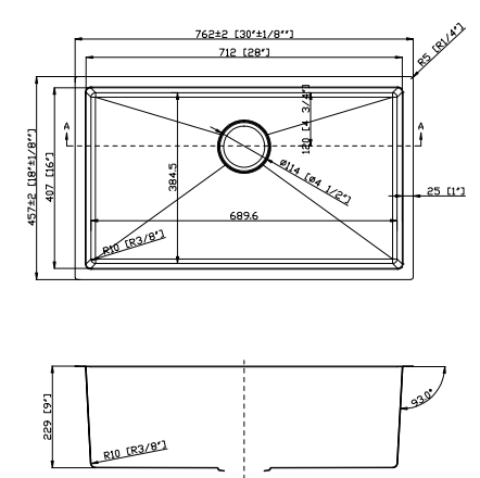 3018 Undermount Sink NR10-18-3018 R10 radius Single Bowl