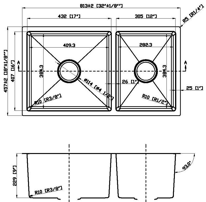 6040 Undermount Sink NR10-18-6040 R10 radius Double Bowl