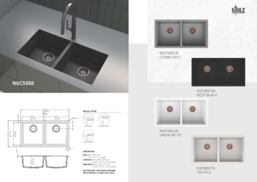• Sound Absorption: The dense material naturally absorbs noise, making them quieter than stainless steel sinks when running water or dropping utensils.