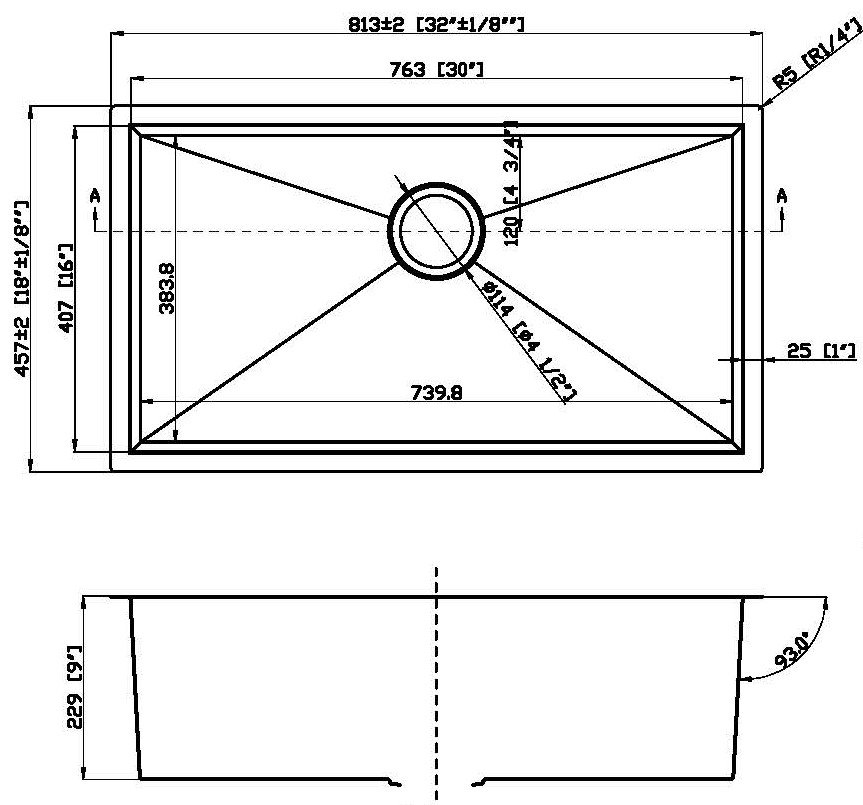 3218 Undermount Sink NR0-18-3218 R0 Radius Single Bowl