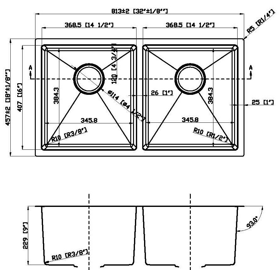 5050 Undermount Sink NR10-18-5050 R10 radius Double Bowl