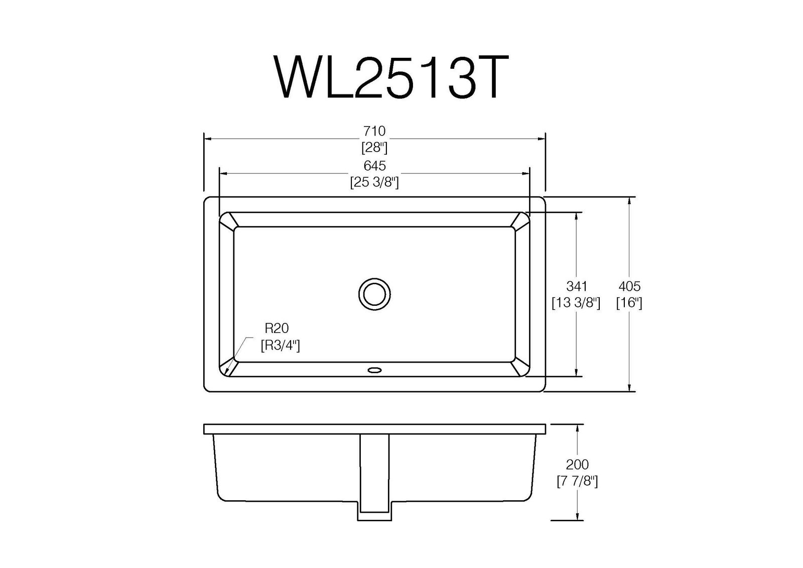 Rectangular Undermount Sink WL1913V